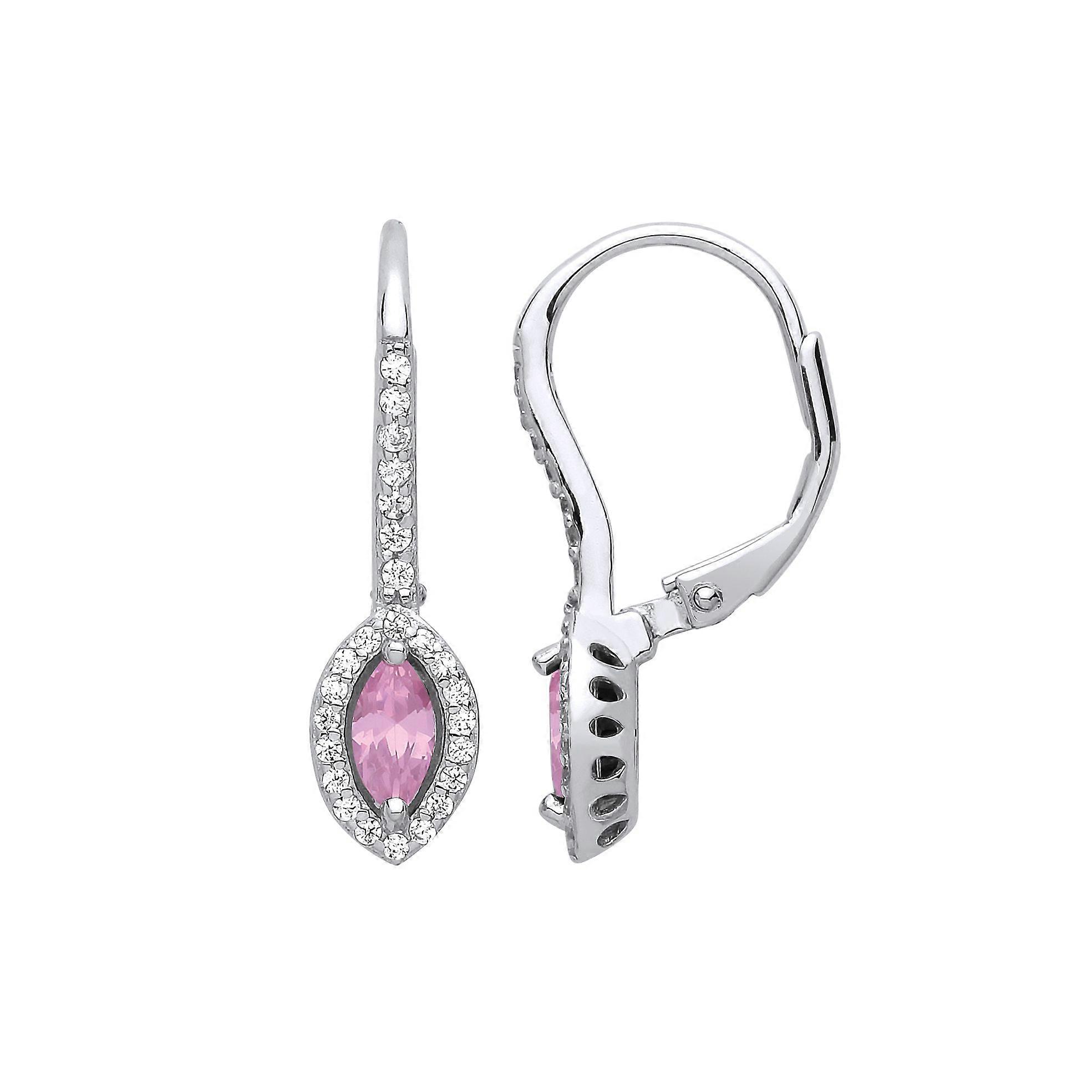 Jewelco London Ladies Sterling Silver Pink Marquise Cubic Zirconia Cat's Eyes Drop Earrings