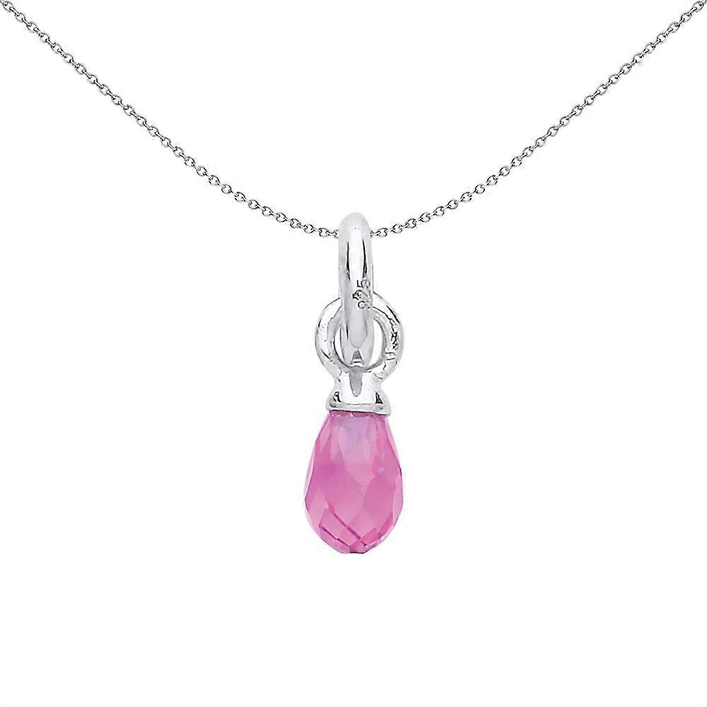 Jewelco London Ladies Sterling Silver Pink Pear Crystal Briolette Charm Necklace