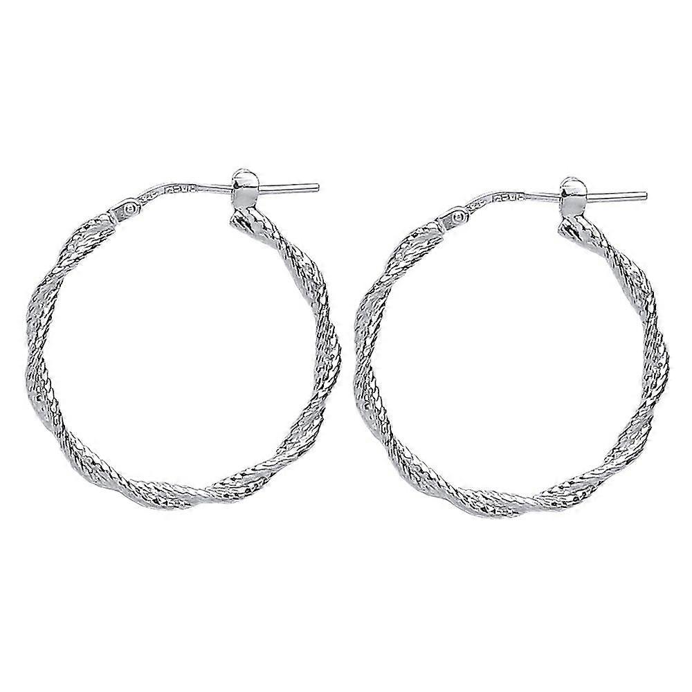 Jewelco London Ladies Sterling Silver Platted Twisted Hoop Earrings 25mm 2mm