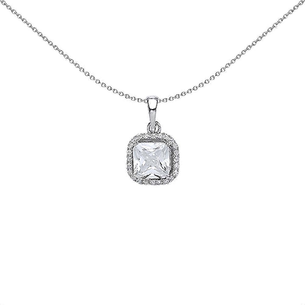 Jewelco London Ladies Sterling Silver Princess Cut Cubic Zirconia Halo Charm Necklace 18 inch