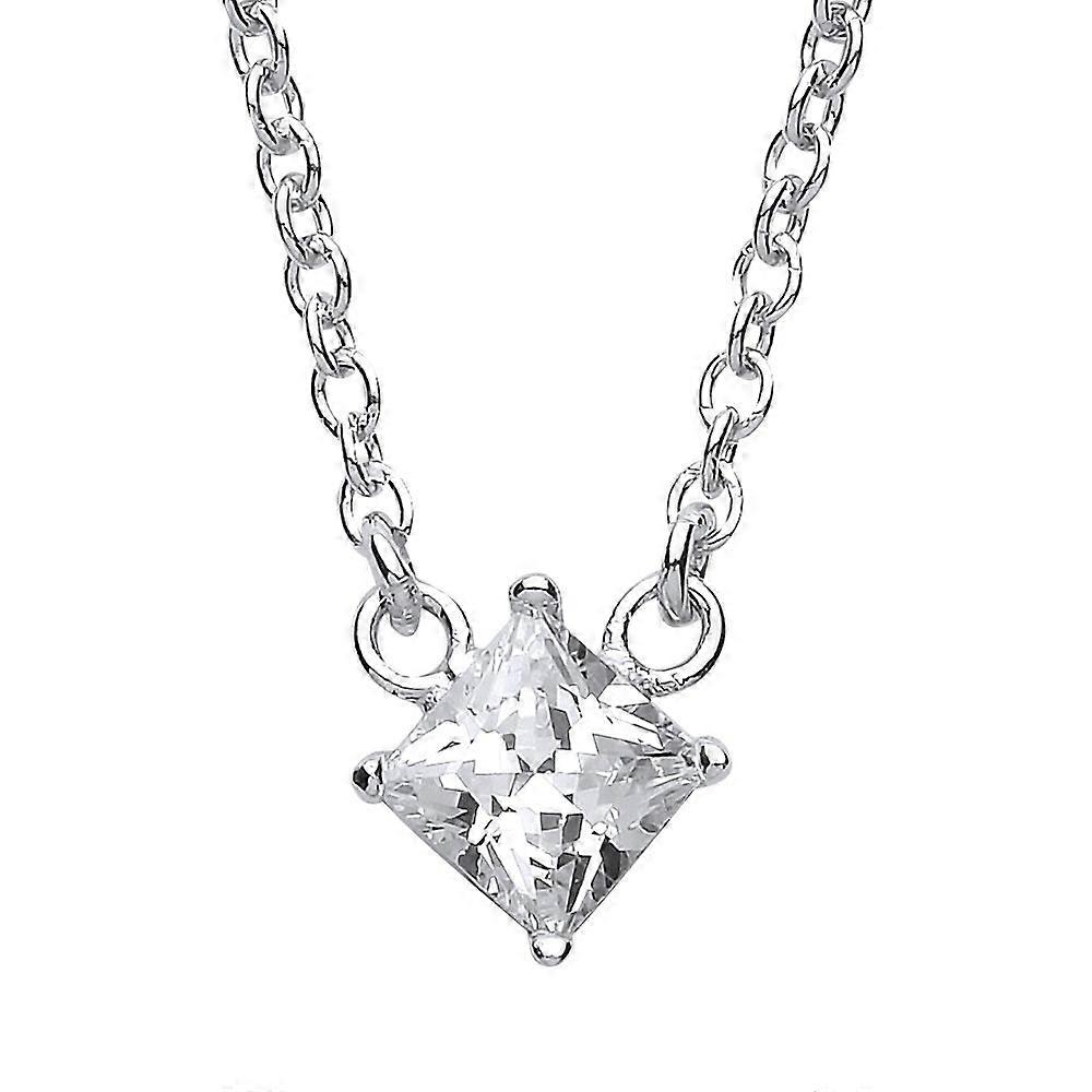 Jewelco London Ladies Sterling Silver princess Cut Cubic zirconia Solitaire Charm Necklace 16 + 2 inch
