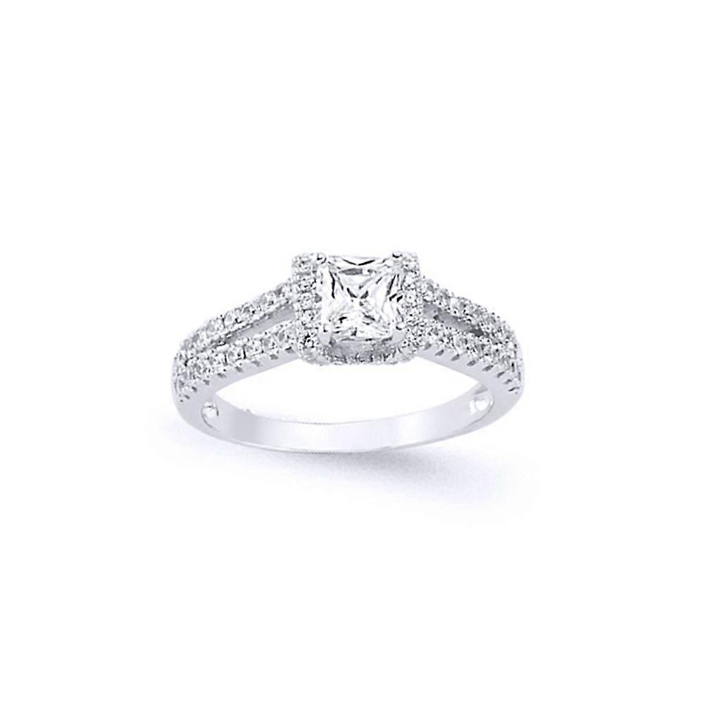 Jewelco London Ladies Sterling Silver Princess Cut Cubic Zirconia Split Shoulder-Set Solitaire Engagement Ring