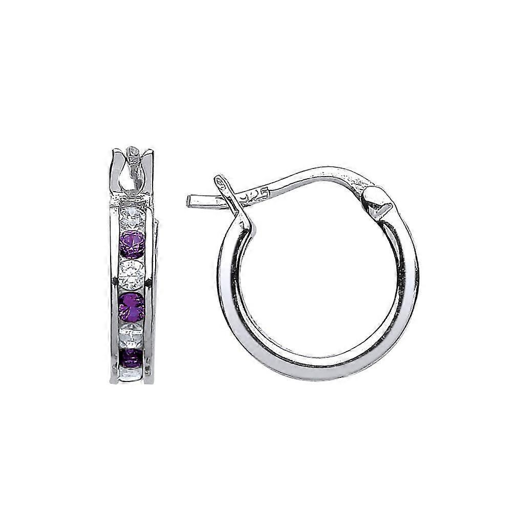 Jewelco London Ladies Sterling Silver Purple Cubic Zirconia Channel Set Eternity Hoop Earrings 12mm