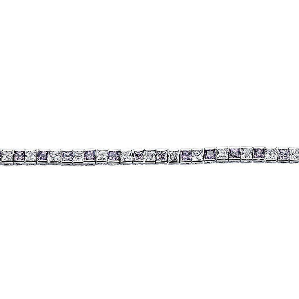 Jewelco London Ladies Sterling Silver Purple Princess Cut Cubic Zirconia Alternating Eternity Tennis Bracelet 4mm