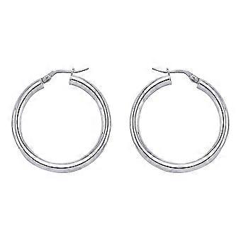 Jewelco London Ladies Sterling Silver Round Tube Polished Hoop Earrings 33mm