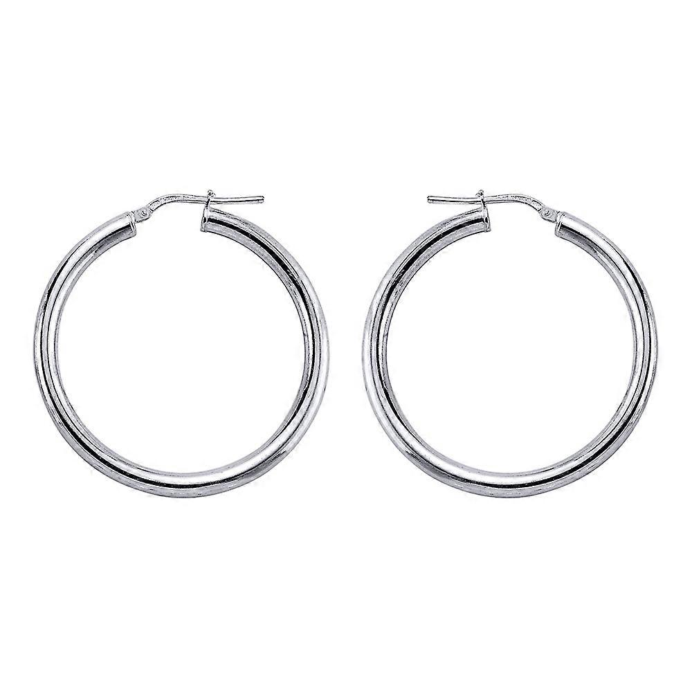 Jewelco London Ladies Sterling Silver Round Tube Polished Hoop Earrings 36mm