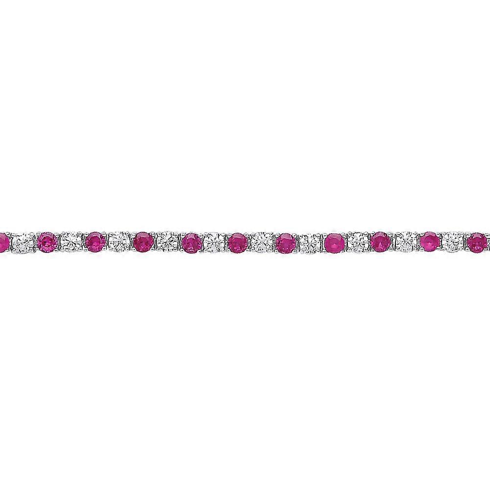 Jewelco London Ladies Sterling Silver Ruby-Red Cubic zirconia Alternating Eternity Tennis Bracelet 4mm 7.25 inch