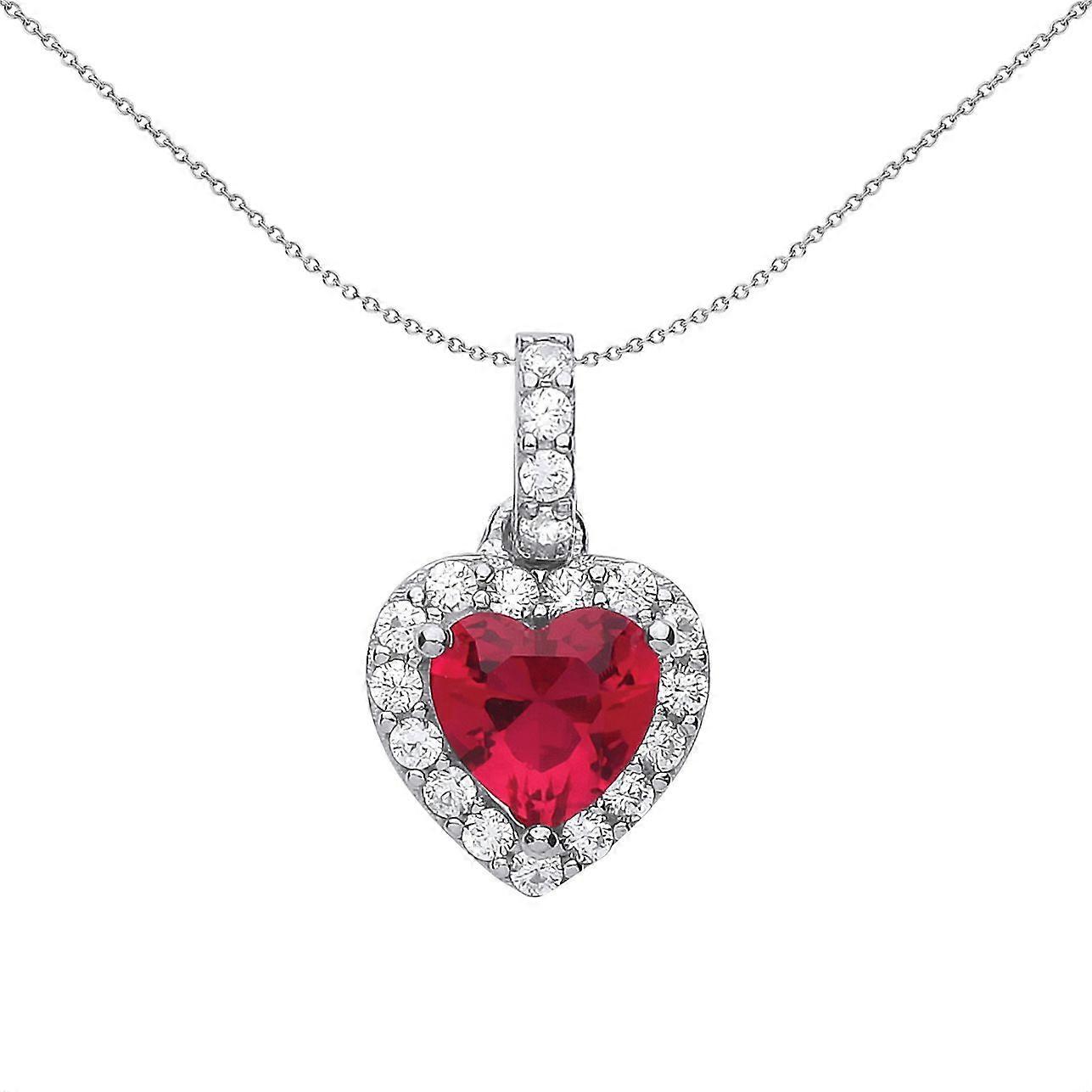 Jewelco London presents this piece from its latest collection of 925 Sterling Silver Rhodium Plated Jewellery. Ladies Rhodium Plated Sterling Silver Ruby-Red Cubic Zirconia Halo Love Heart Charm Necklace 18 inch . Includes a Rhodium-Plated Sterling Silver chain, which can be adjusted to 16, 18 or 20 inches. Height: 14mm (8mm excluding bale) Width: 8mm Length: 450mm Weight: 1.1g Centre Stone: 5mm GEMSTONE: Cubic Zirconia, Heart, Red, Simulated GEMSTONE 2: Cubic Zirconia, Round, White, Simulated SKU: GVP484
