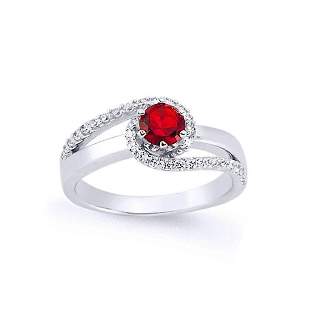 Jewelco London Ladies Sterling Silver Ruby-Red Cubic Zirconia Whirlpool Tornado Solitaire Engagement Ring