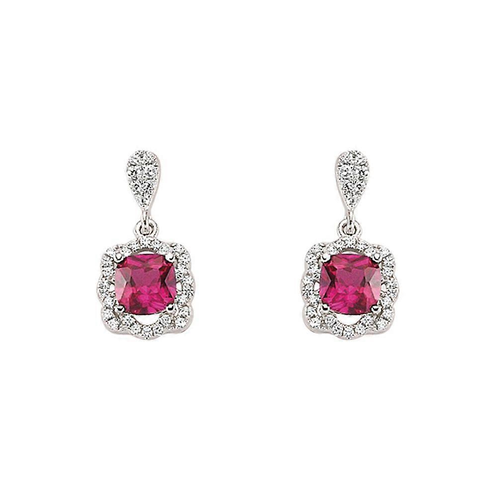 Jewelco London Ladies Sterling Silver Ruby-Red Cushion Cubic Zirconia Halo Cluster Stud Earrings