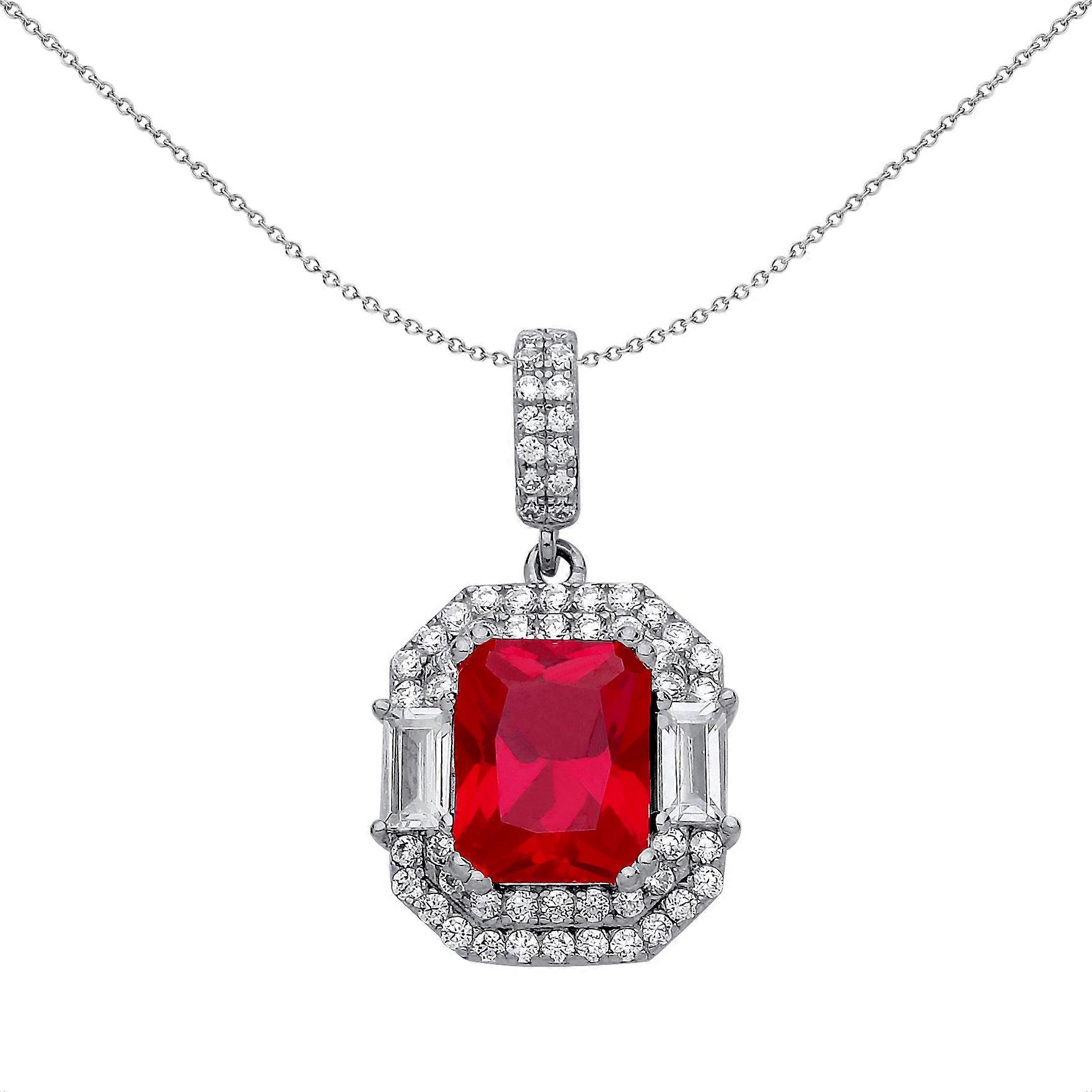 Jewelco London Ladies Sterling Silver Ruby-Red Emerald cut Cubic Zirconia Octagon Amphitheatre Pendant Necklace 18 inch
