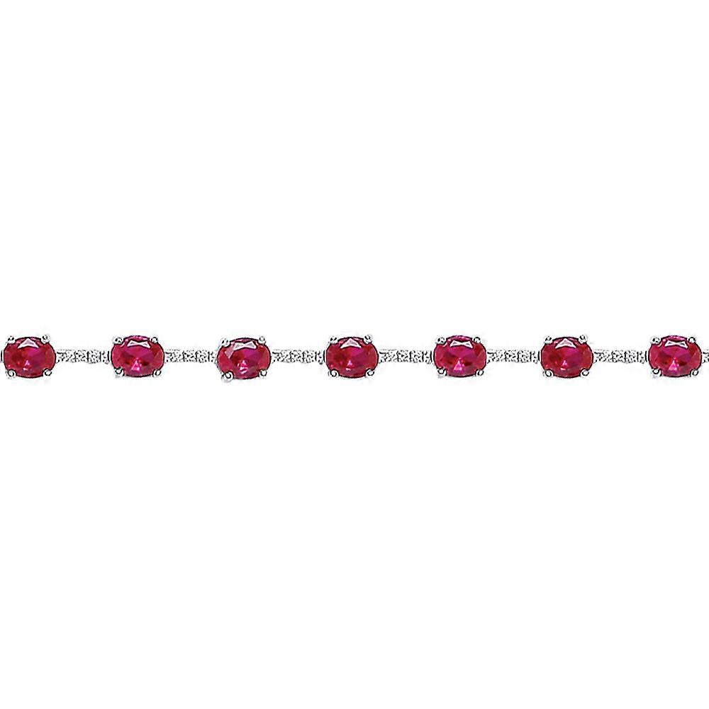 Jewelco London Ladies Sterling Silver Ruby-Red Oval Cubic Zirconia Alternating Eternity Tennis Bracelet 5mm 6.5 inch