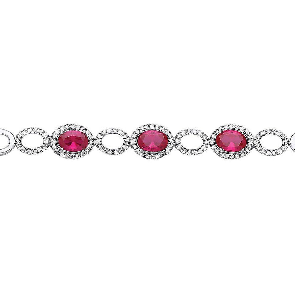 Jewelco London Ladies Sterling Silver Ruby-Red Oval Cubic zirconia Halo Cluster Tennis Bracelet 8mm
