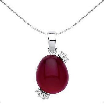 Jewelco London Ladies Sterling Silver Ruby-Red Oval Quartz Pebble Pendant Necklace 18 inch