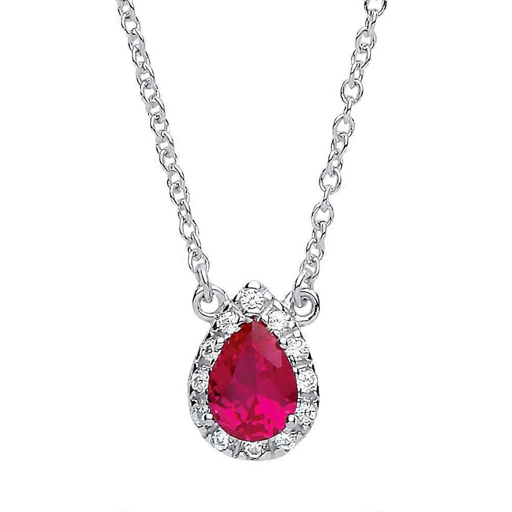 Jewelco London Ladies Sterling Silver Ruby-Red Pear Cubic zirconia Teardrop Halo Charm Necklace 16 + 2 inch