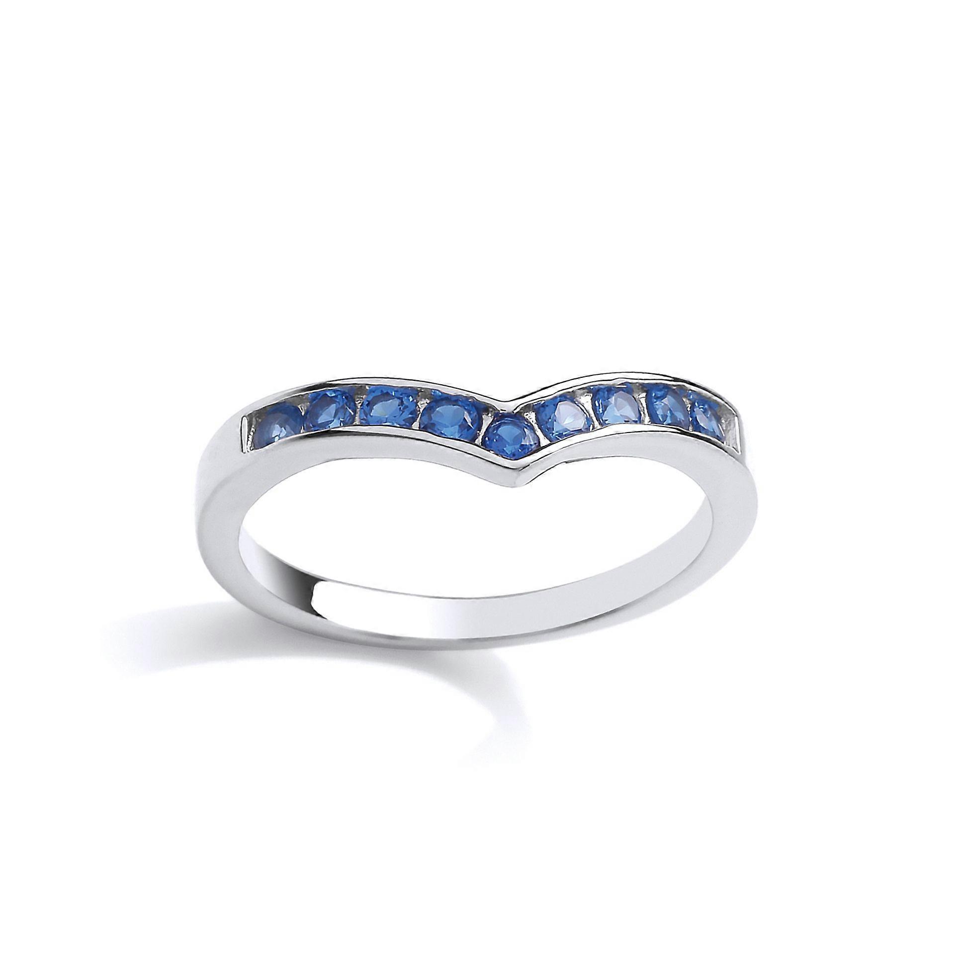 Jewelco London Ladies Sterling Silver Sapphire-Blue Cubic Zirconia 9 Stone Channel Set Wishbone Eternity Ring