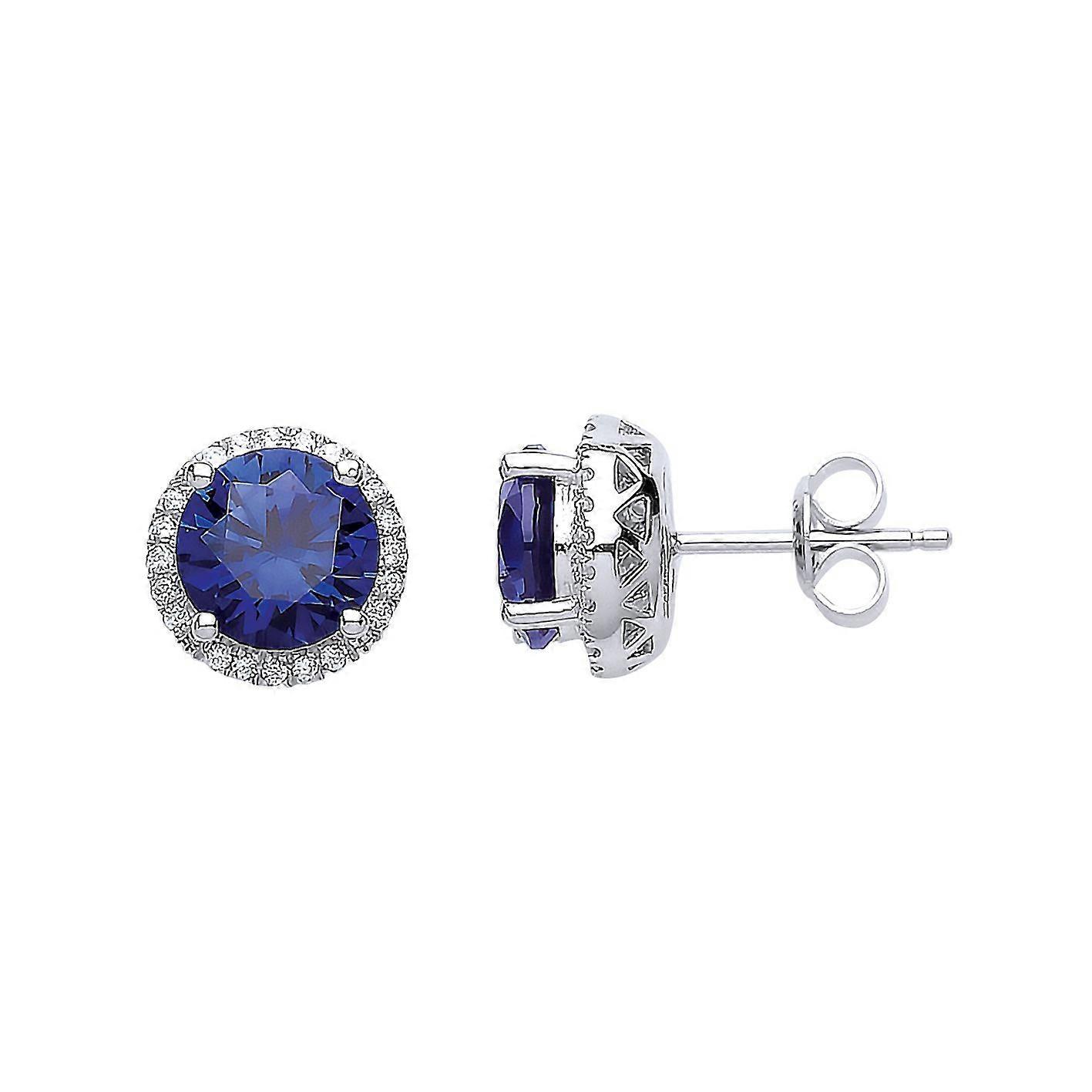 Jewelco London Ladies Sterling Silver Sapphire-Blue Cubic Zirconia Halo Stud Earrings