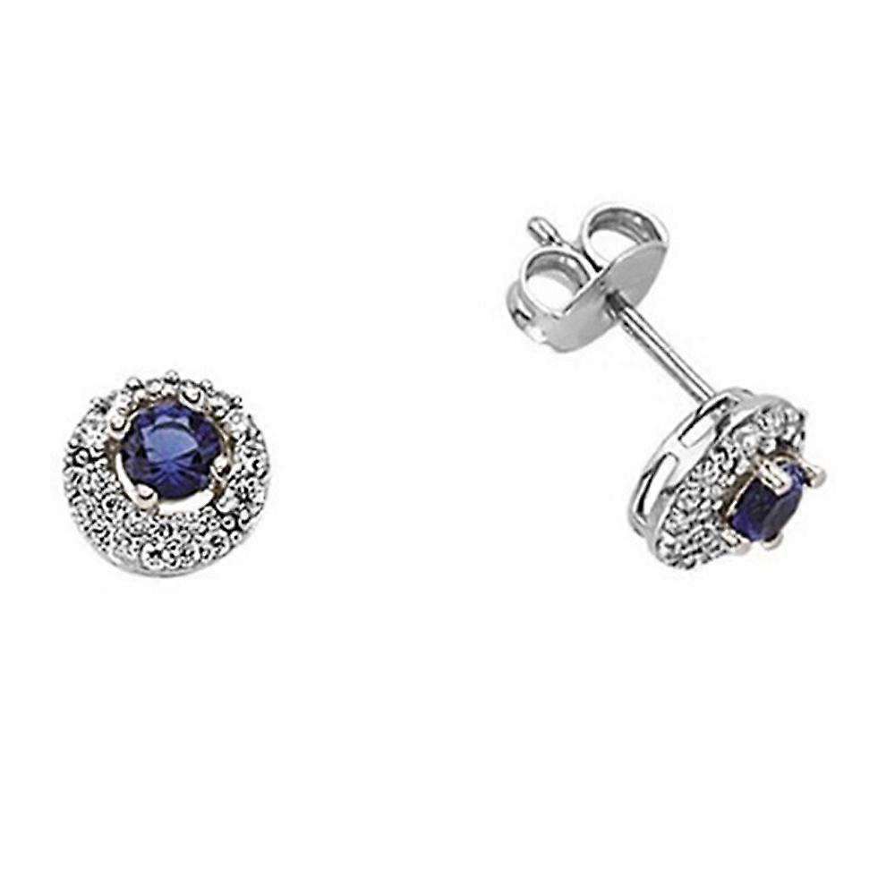 Jewelco London Ladies Sterling Silver Sapphire-Blue Cubic Zirconia Halo Stud Earrings