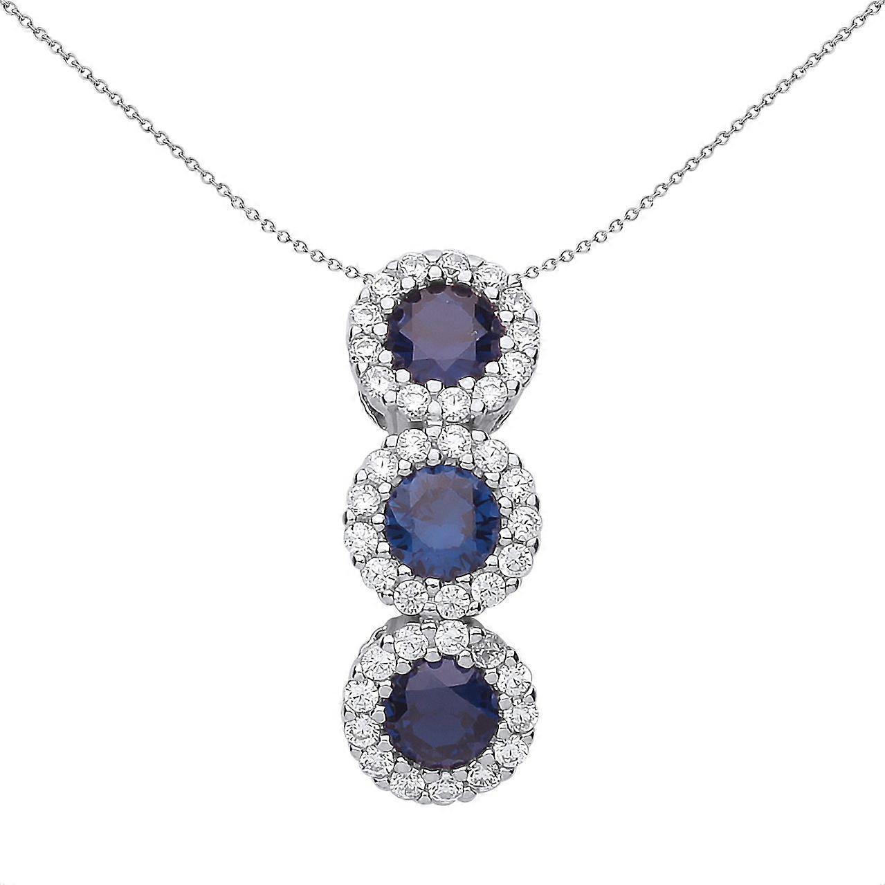 Jewelco London Ladies Sterling Silver Sapphire-Blue Cubic Zirconia Trilogy Halo Cluster Pendant Necklace 18 inch