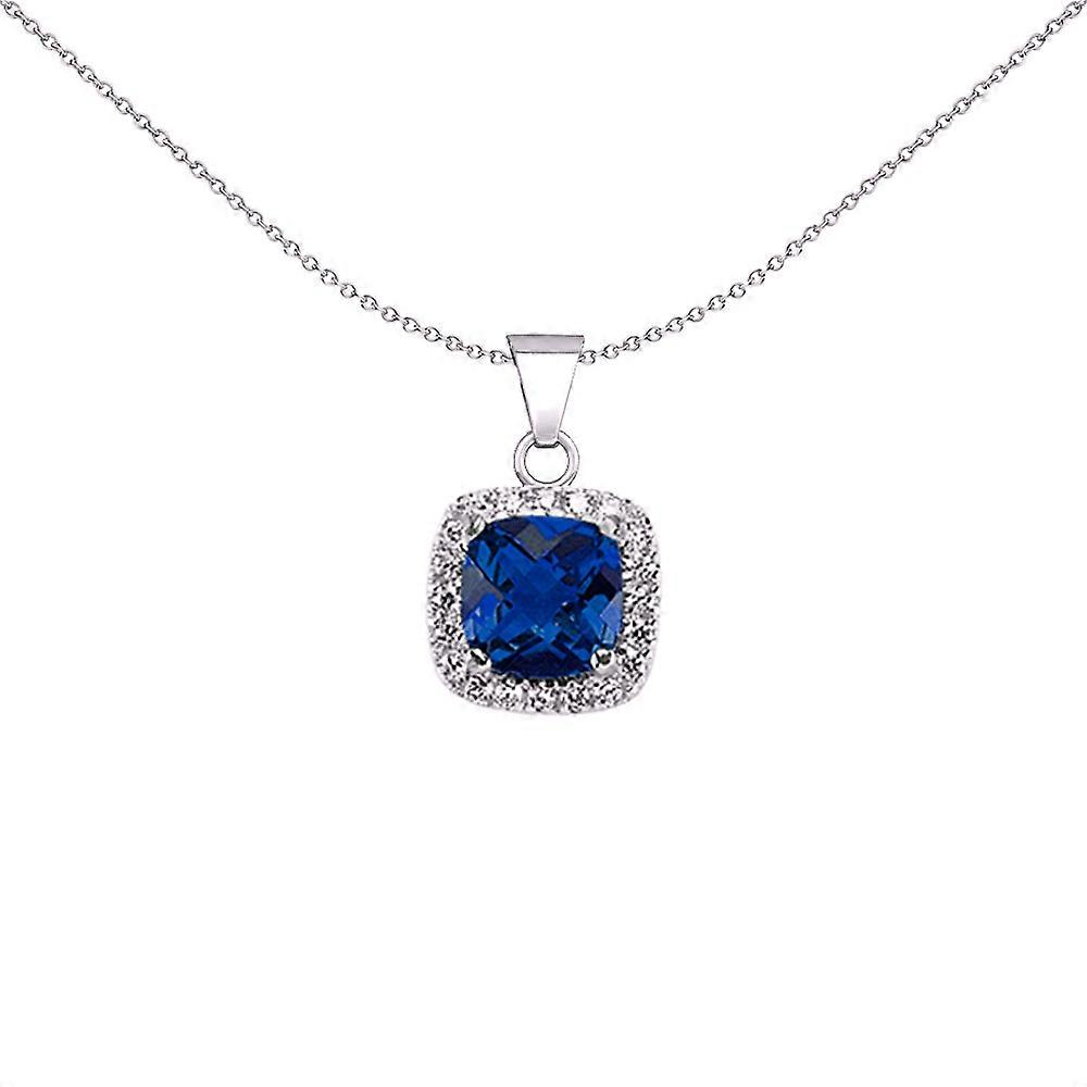 Jewelco London Ladies Sterling Silver Sapphire-Blue Cushion Cubic Zirconia Halo Cluster Pendant Necklace 18 inch