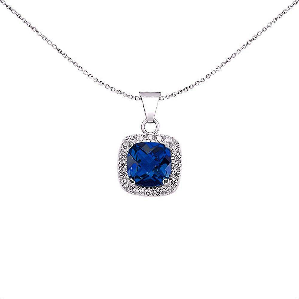 Jewelco London Ladies Sterling Silver Sapphire-Blue Cushion Cubic Zirconia Halo Cluster Pendant Necklace 18 inch