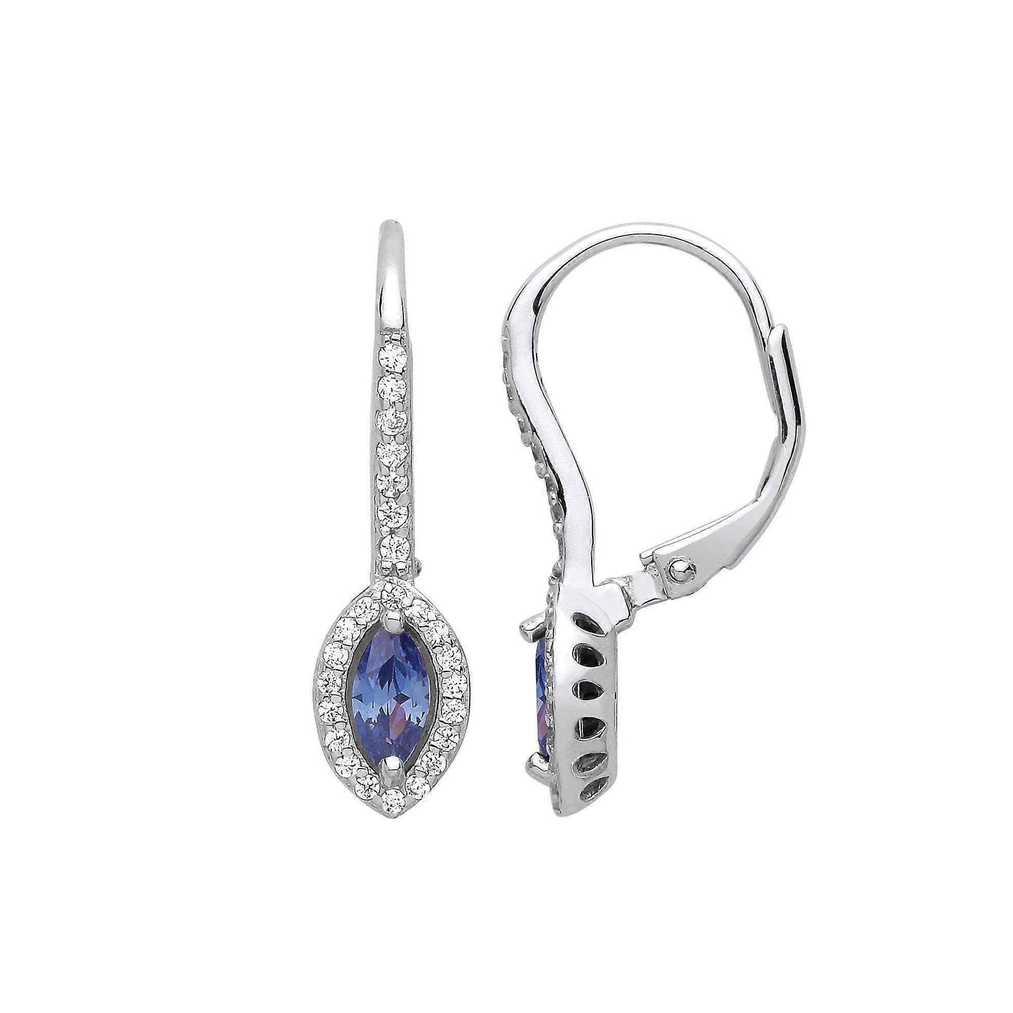 Jewelco London Ladies Sterling Silver Sapphire-Blue Marquise Cubic Zirconia Cat's Eyes Drop Earrings