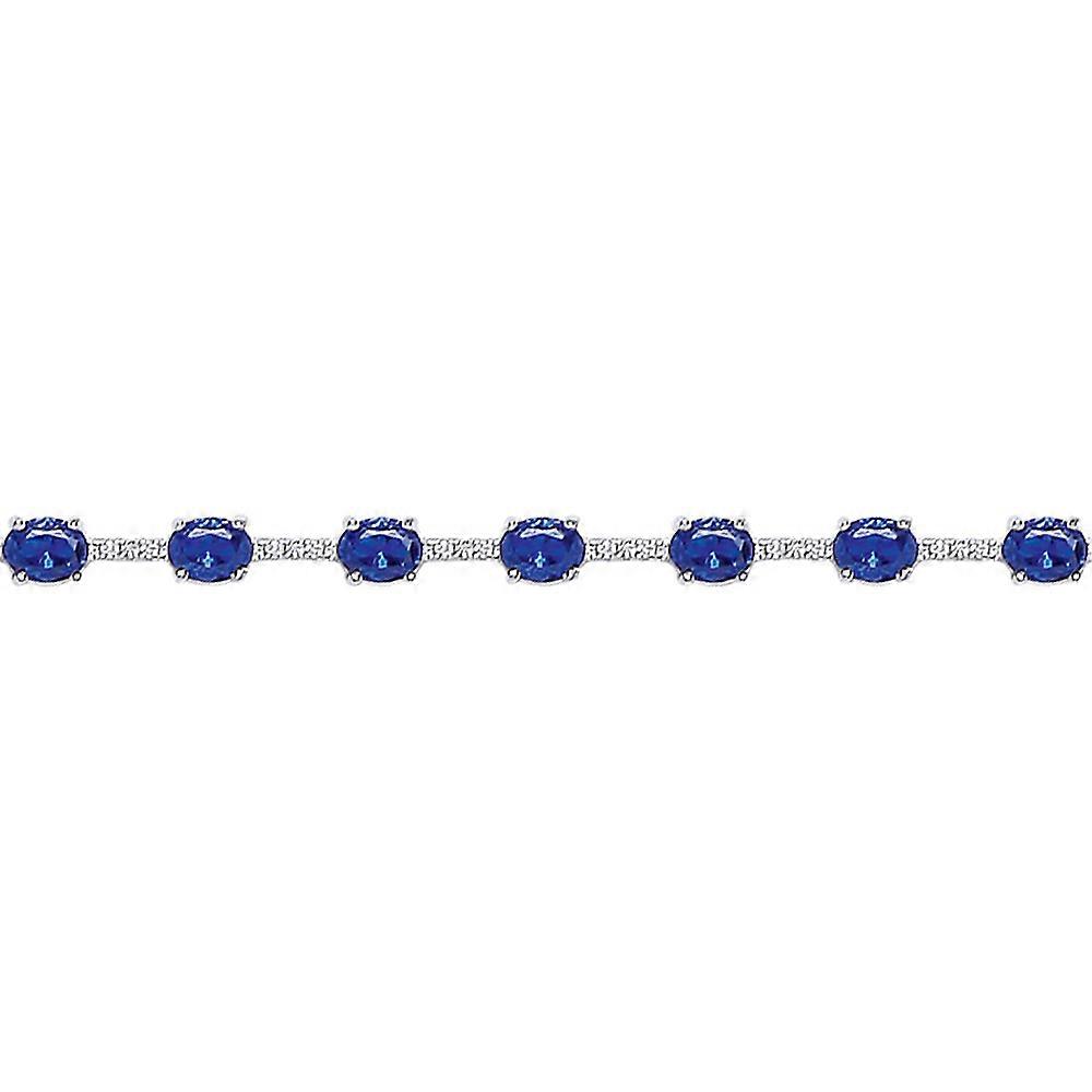 Jewelco London Ladies Sterling Silver Sapphire-Blue Oval Cubic Zirconia Alternating Eternity Tennis Bracelet 5mm 6.5 inch