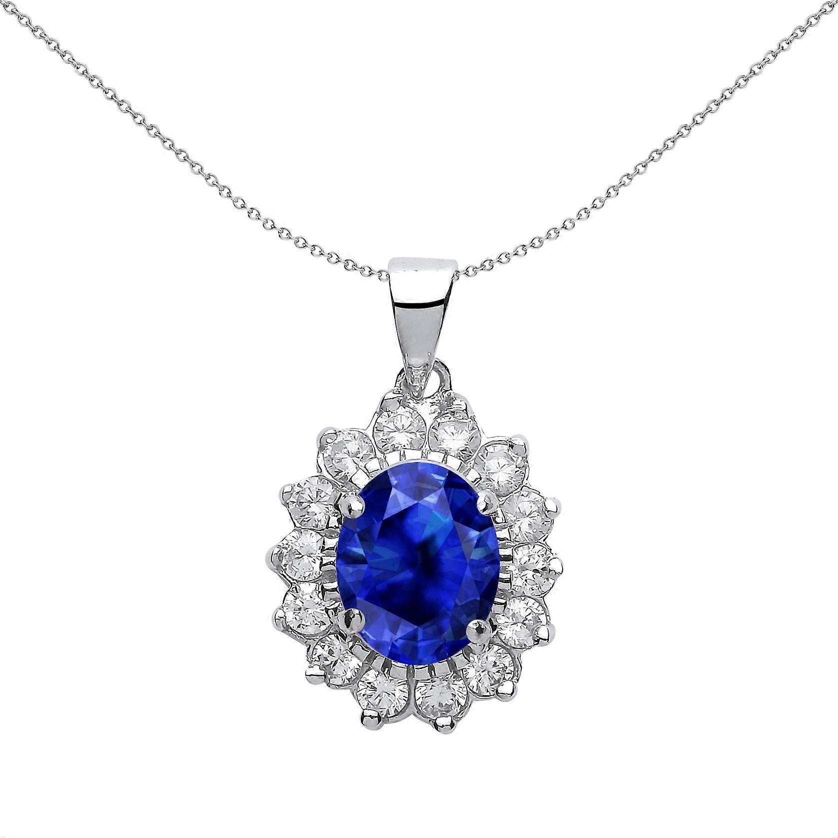 Jewelco London Ladies Sterling Silver Sapphire-Blue Oval Cubic Zirconia Lady Di Pendant Necklace 18 inch