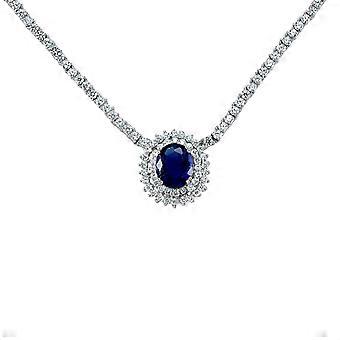 Jewelco London Ladies Sterling Silver Sapphire-Blue Oval Cubic Zirconia Royal Lady Di Cluster Pendant Necklace 15 inch