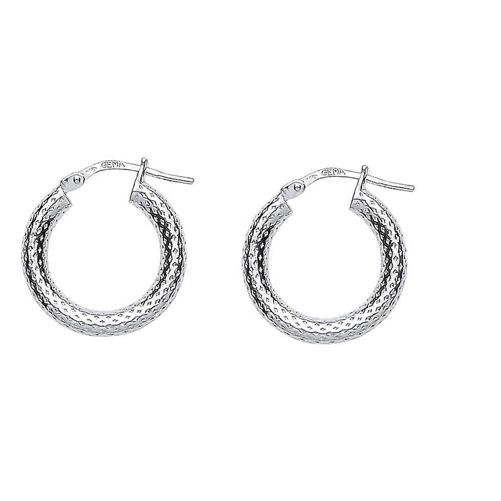 Jewelco London Ladies Sterling Silver Snake Skin Hoop Earrings 17mm 3mm