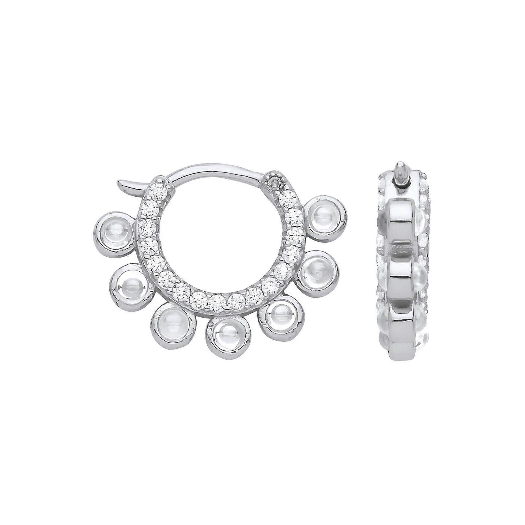 Jewelco London Ladies Sterling Silver Spherical Cubic Zirconia Bubbly Flower Hoop Drop Earrings 13mm