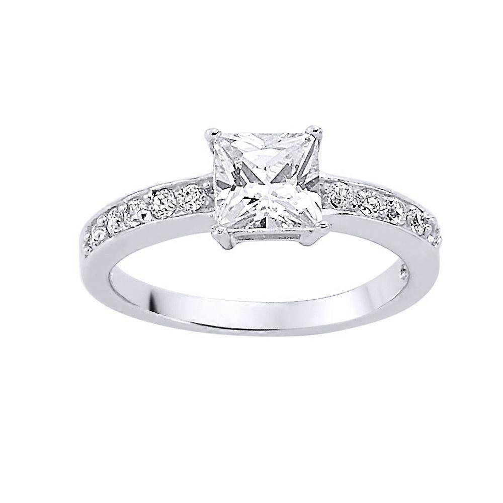Jewelco London Ladies Sterling Silver Square Cubic Zirconia Shoulder-Set Halo Solitaire Engagement Ring