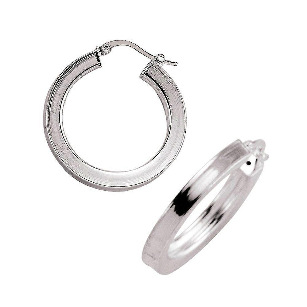 Jewelco London Ladies Sterling Silver Square Tube Polished Hoop Earrings 32mm