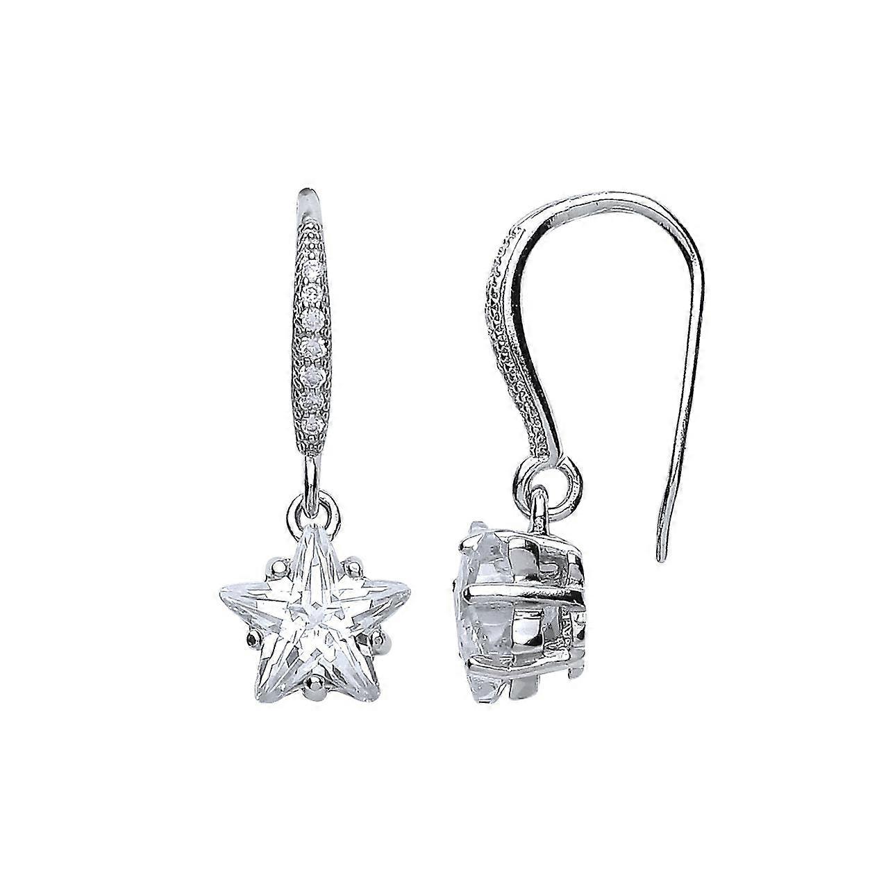Jewelco London Ladies Sterling Silver Star Shape Cubic Zirconia Star Flower Drop Earrings
