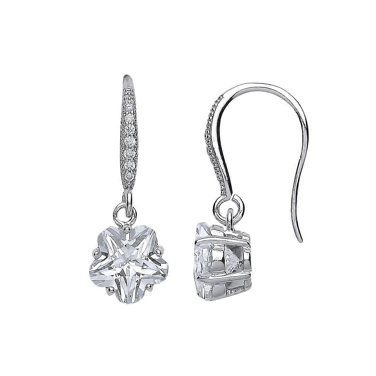 Jewelco London Ladies Sterling Silver Star Shape Cubic Zirconia Star Flower Drop Earrings