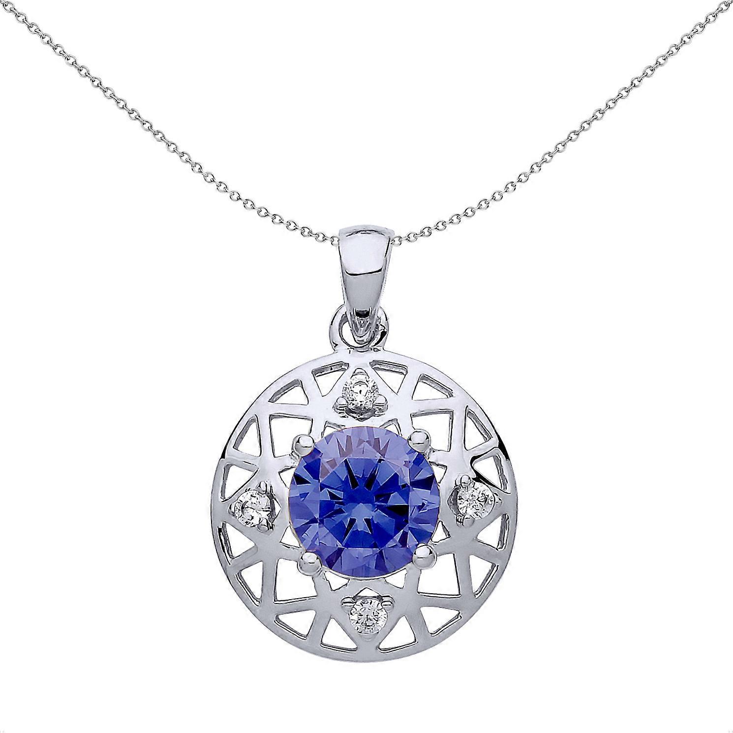 Jewelco London Ladies Sterling Silver Tanzanite-Violet Cubic Zirconia Moonlight Frost Pendant Necklace 18 inch