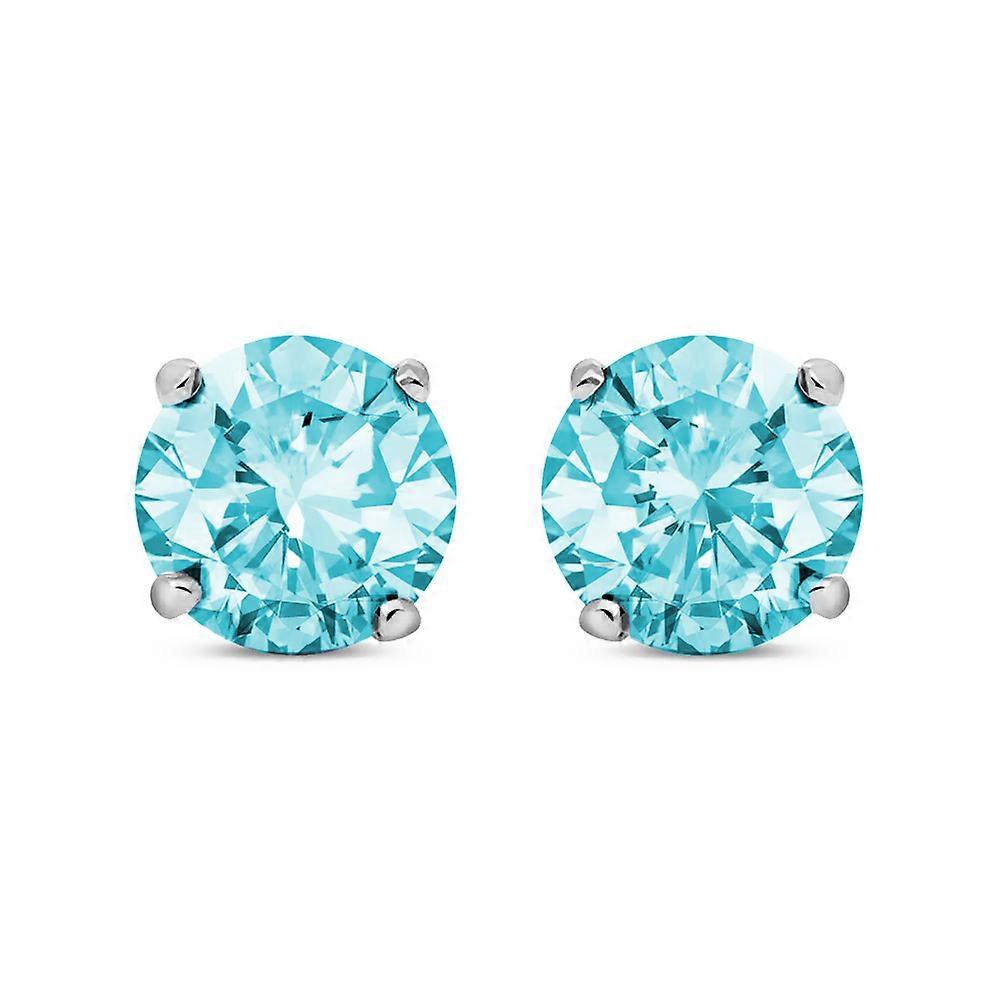 Jewelco London Ladies Sterling Silver Teal Cubic Zirconia Double Gallery Solitaire Stud Earrings 5mm 1.00ct