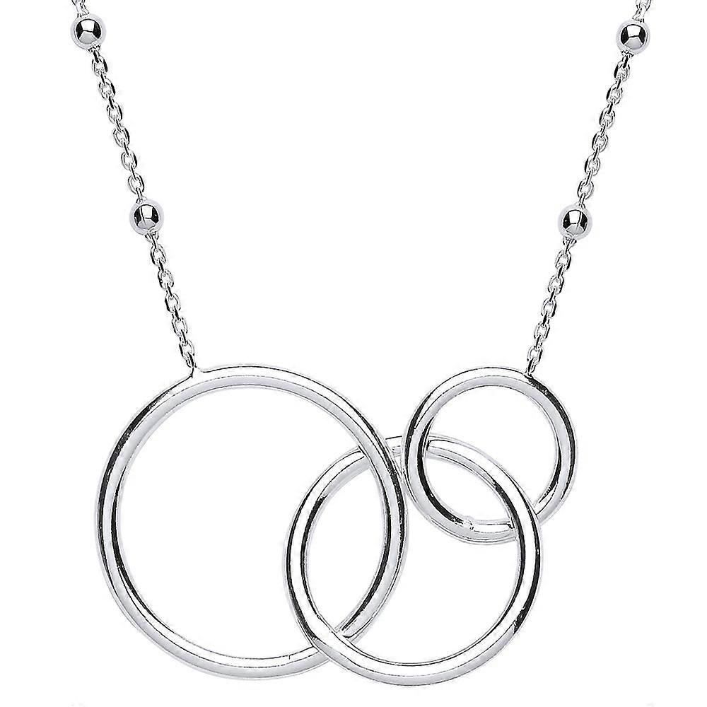 Jewelco London Ladies Sterling Silver Triple Chinese Linking Rings Bead Necklace 16 inch
