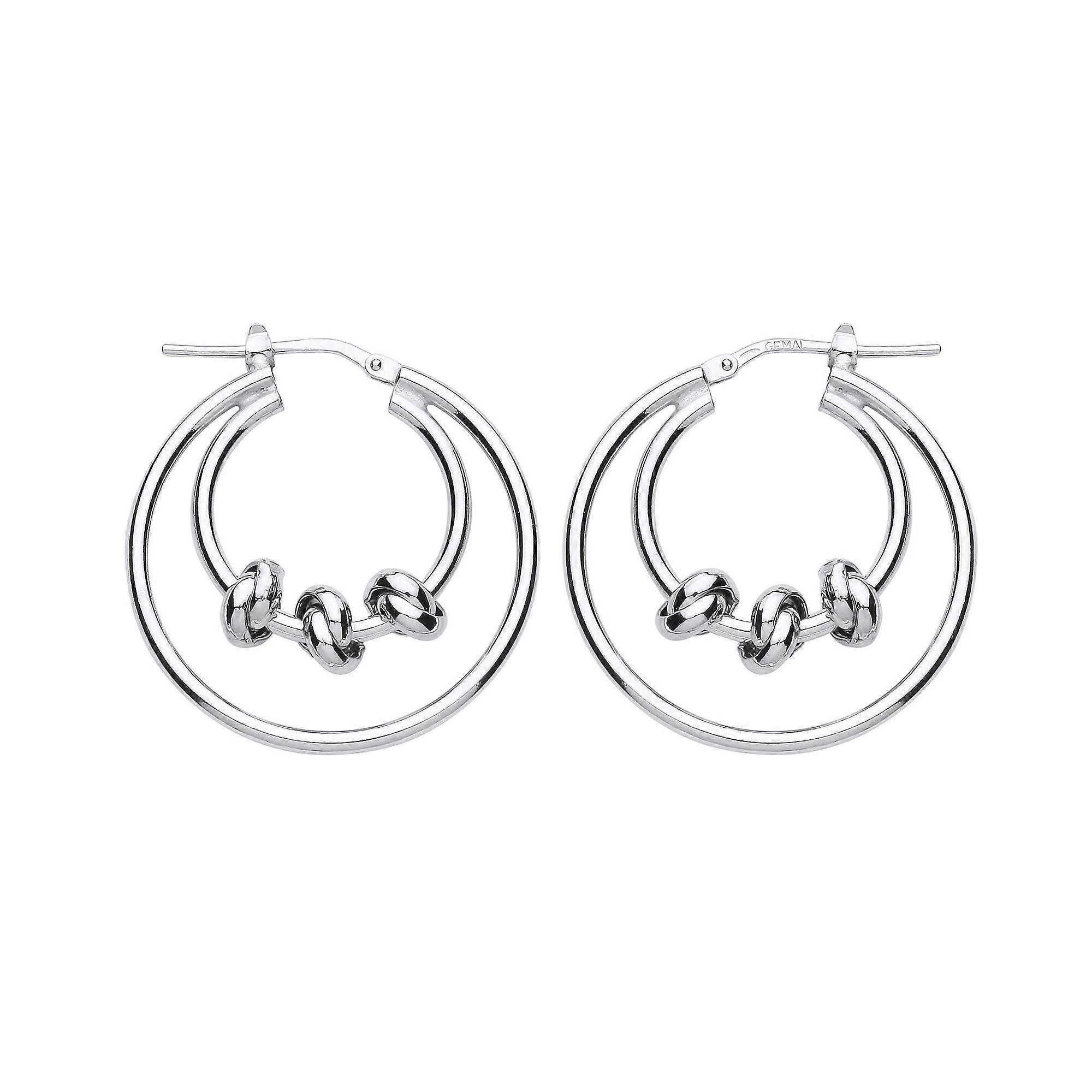 Jewelco London Ladies Sterling Silver Triple Knot Double Hoop Earrings 29mm