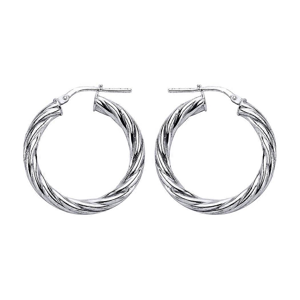 Jewelco London Ladies Sterling Silver Twisted Hoop Earrings 28mm