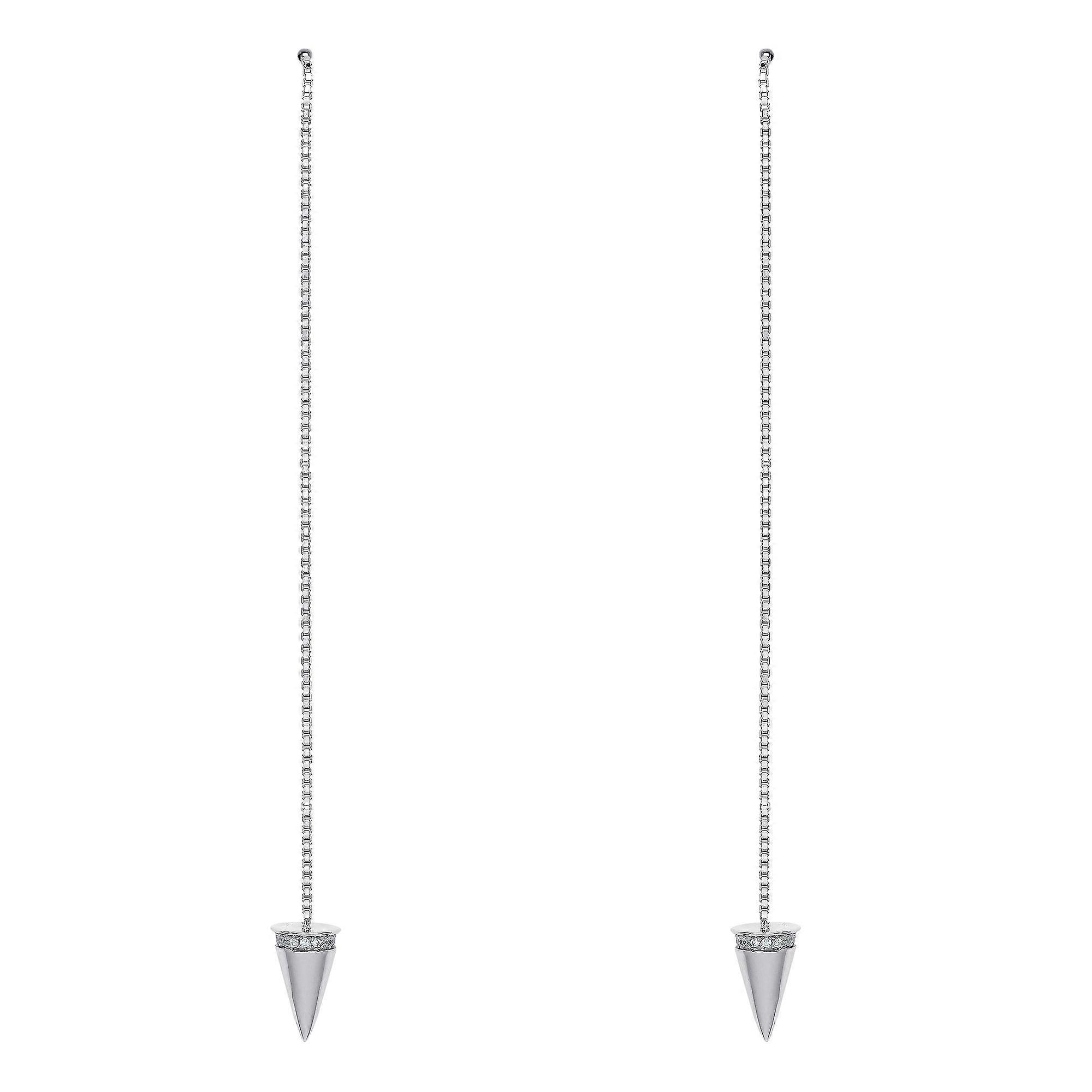 Jewelco London Ladies Sterling Silver White cubic Zirconia Arrow Torpedo Drop Earrings 114mm