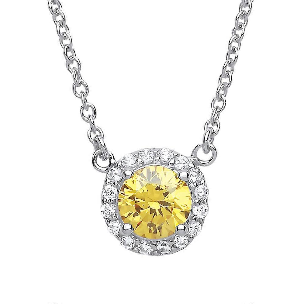 Jewelco London Ladies Sterling Silver Yellow Cubic Zirconia Solitaire Halo Charm Necklace 15 + 2 inch