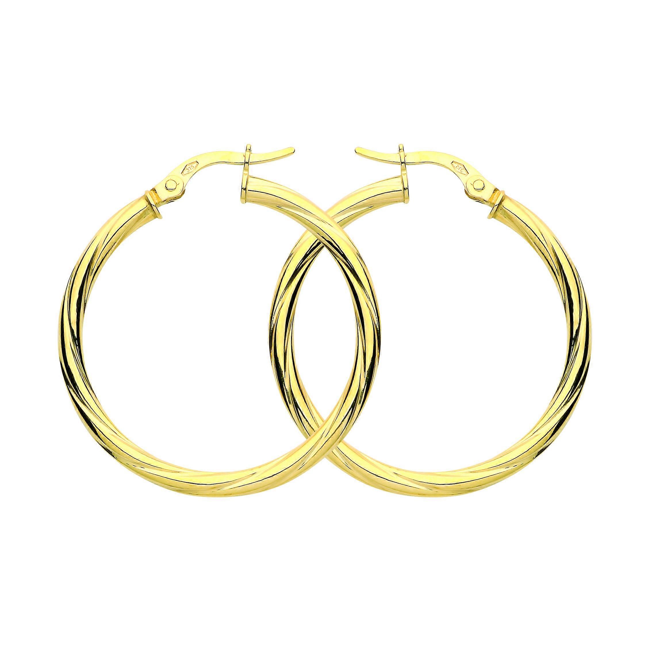 Jewelco London Ladies Yellow 9ct Gold Classic Twist Hoop Earrings 30mm 2.5mm