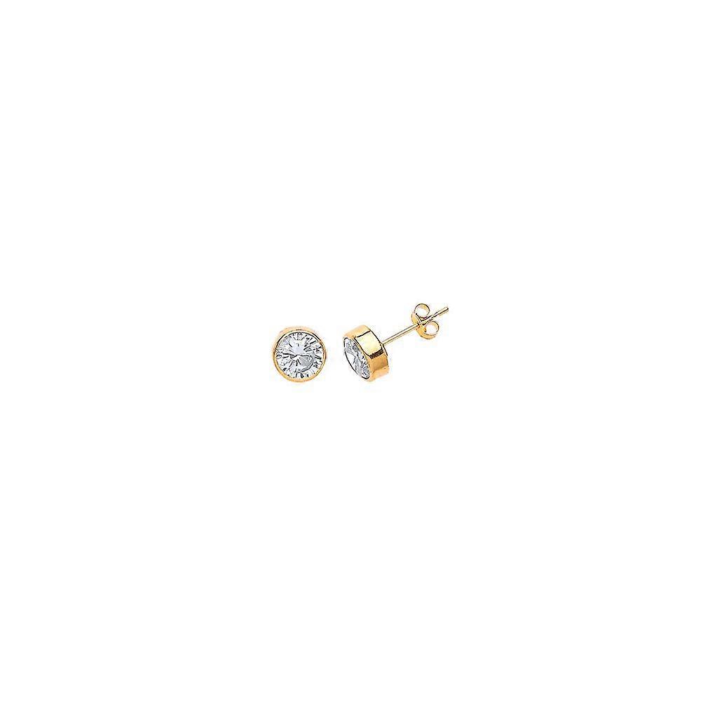 Jewelco London Ladies Yellow 9ct Gold CZ Donut Bezel Solitaire Stud Earrings