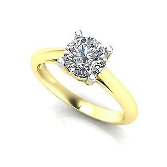Jewelco London Ladies Yellow 9ct Gold CZ Elegant Miniamal 4 Claw Solitaire Engagement Ring