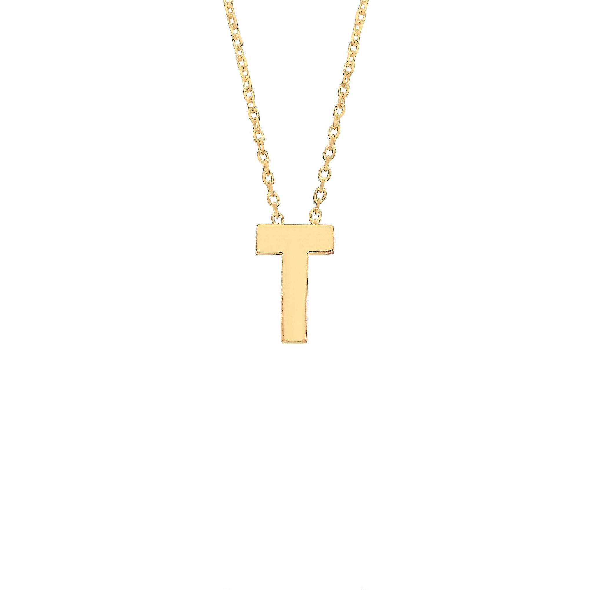 Jewelco London Ladies Yellow 9ct Gold Letter T Initial Pendant Necklace 17 inch 43cm