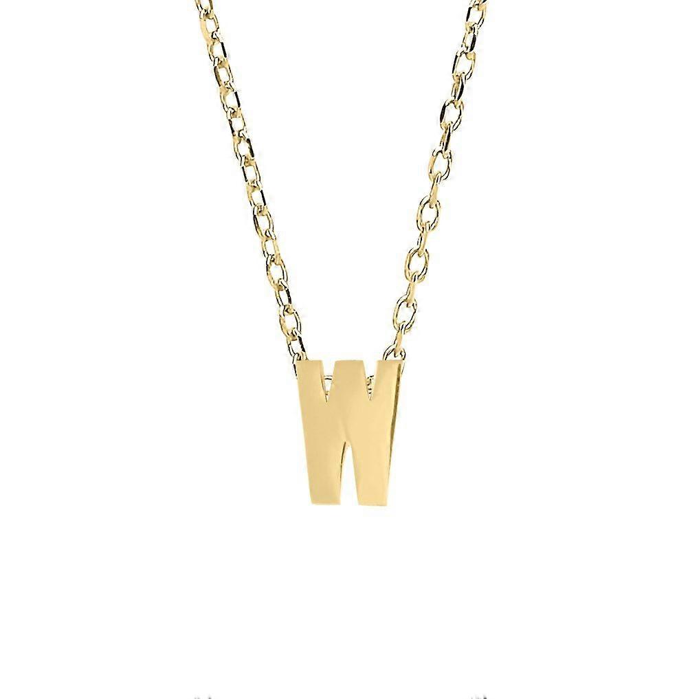 Jewelco London Ladies Yellow 9ct Gold Letter W Initial Pendant Necklace 17 inch 43cm