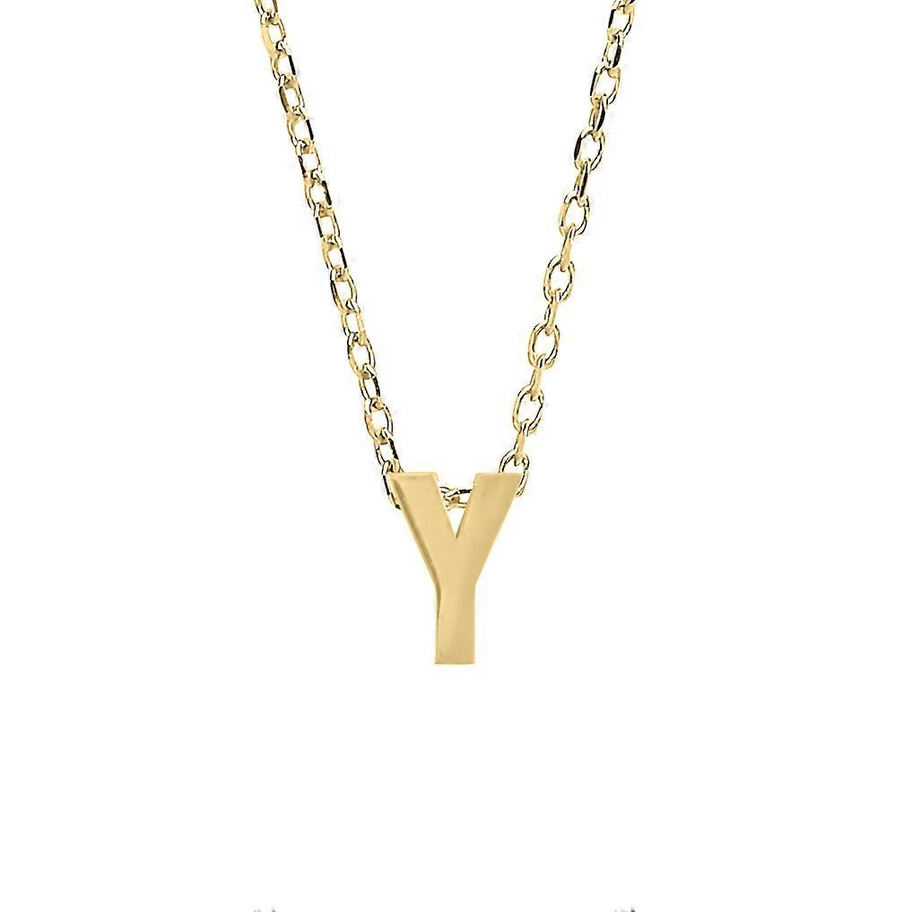 Jewelco London Ladies Yellow 9ct Gold Letter Y Initial Pendant Necklace 17 inch 43cm