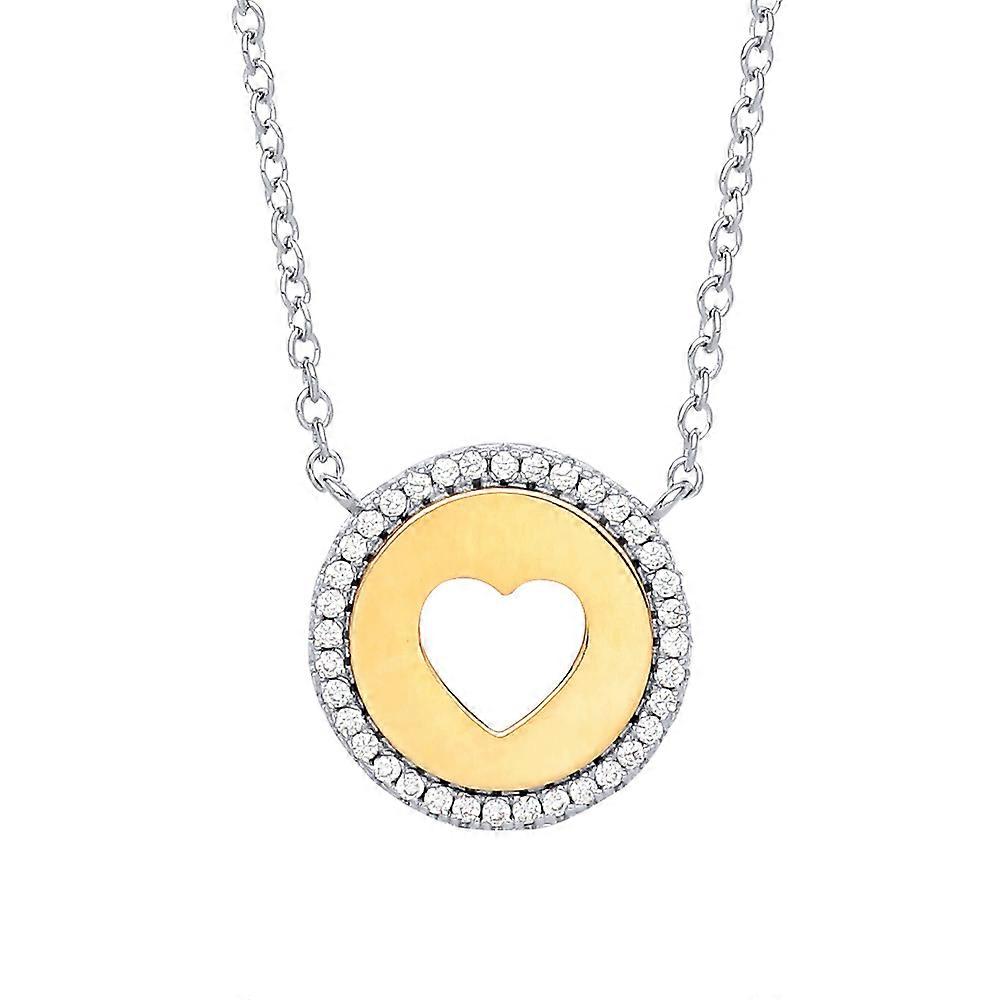 Jewelco London Ladies Yellow Gold-Plated Sterling Silver Cubic Zirconia Love Heart Halo Medallion Necklace 17 + 2 inch