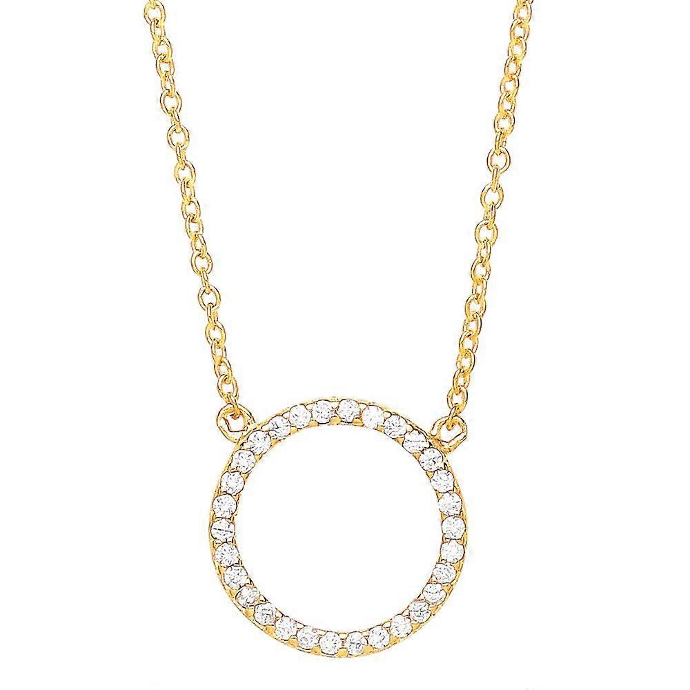 Jewelco London Ladies Yellow Gold-Plated Sterling Silver Cubic Zirconia Pave Halo Charm Necklace 16 + 2 inch